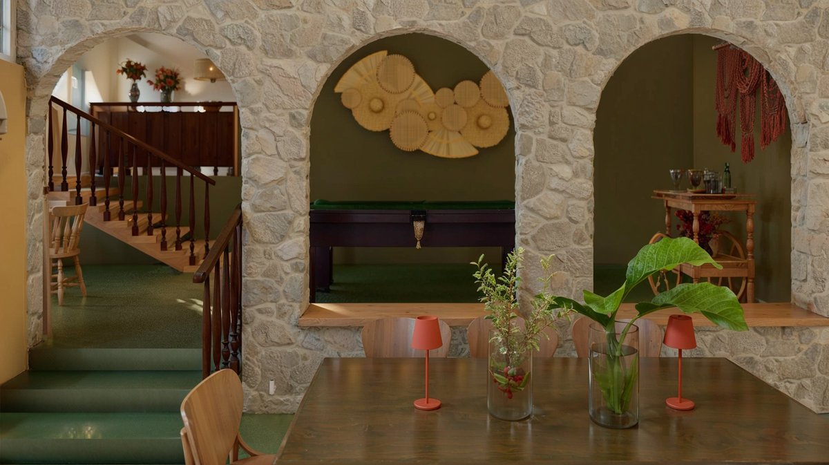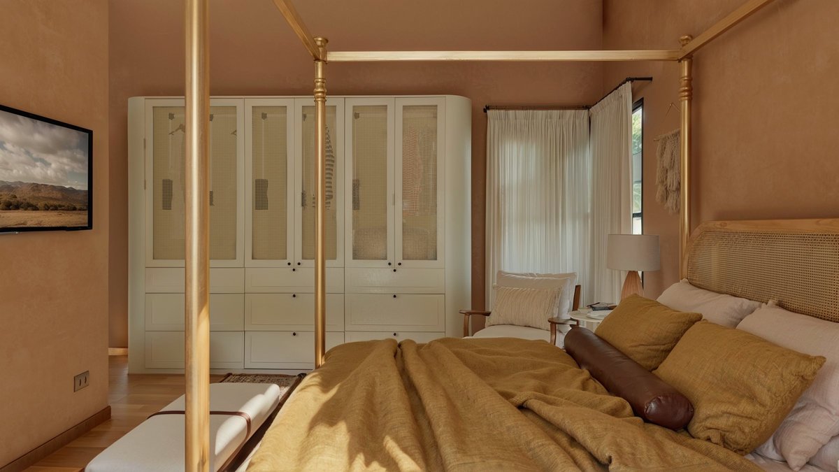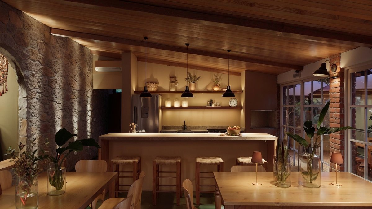 Pedra, madeira e texturas terrosas reforçam o vínculo com a natureza, enquanto o mobiliário artesanal e os tecidos leves evocam o conforto das casas de avó. O resultado é uma atmosfera que equilibra rusticidade e poesia, tradição e contemporaneidade, um verdadeiro cottage brasileiro, onde o tempo é o principal luxo.