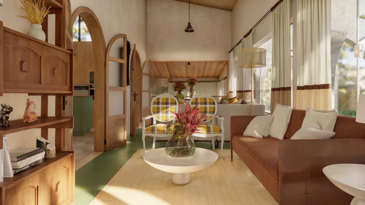 A casa pertence a uma mulher de alma interiorana, veterinária, empreendedora e sonhadora, que decidiu transformar o desejo de quietude em morada. Depois de anos dedicados ao trabalho, buscava um refúgio para a aposentadoria, onde pudesse cultivar a terra, acolher pessoas e contemplar o horizonte.
