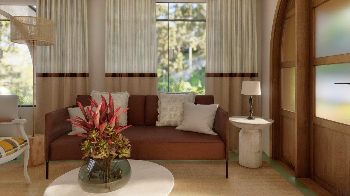 As cores fortes, com aroma de raízes e memórias, refletem a personalidade da moradora e o DNA da marca Raízes e Conexões, espaço onde natureza, espiritualidade e vida cotidiana se entrelaçam.