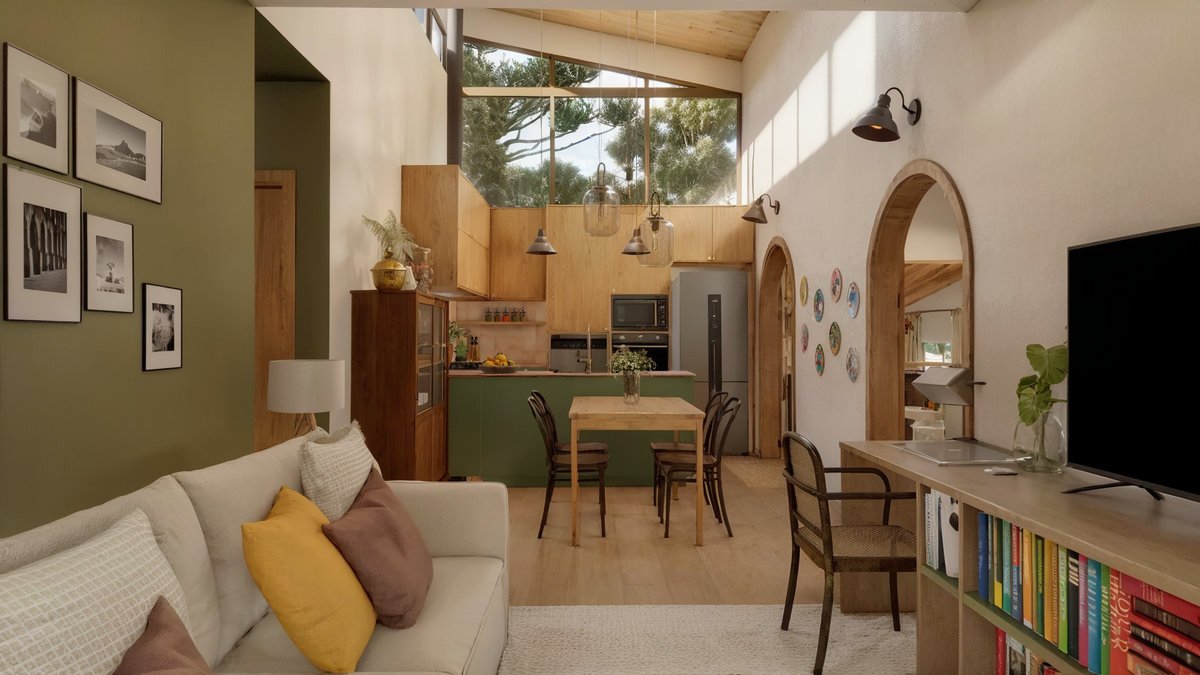 As ampliações respeitaram o terreno e sua topografia acentuada, reinterpretando a edificação existente para acolher luz, vento e paisagem. O desenho arquitetônico foi pensado para garantir autonomia à moradora nos dias tranquilos e funcionalidade nos momentos de encontro, quando a casa se transforma em espaço de locação para eventos intimistas.