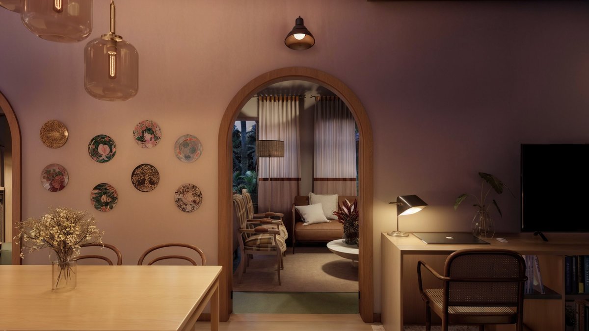O projeto, assinado pela L’archi, partiu da leitura sensível dessa transição: um lar que não marca um fim, mas um recomeço.