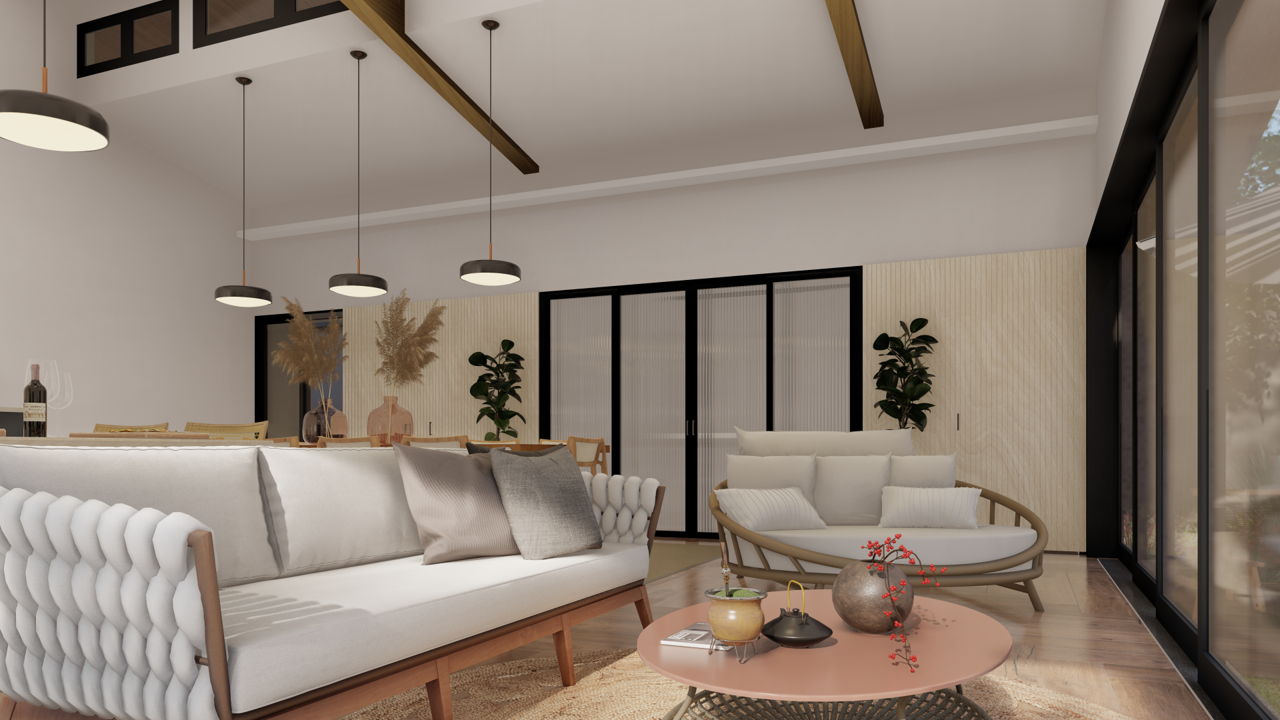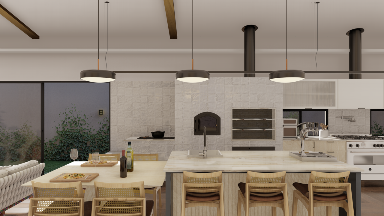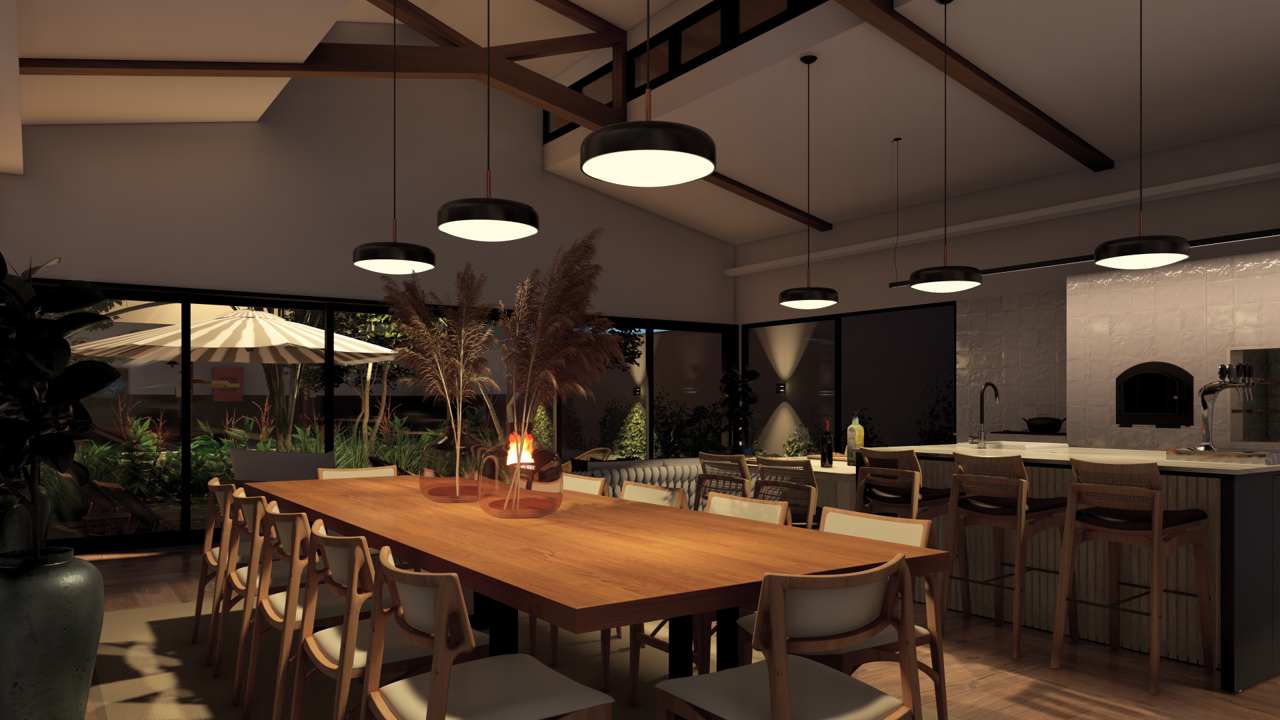 Luz e ventilação natural, enquadramentos de vegetação do quintal, amplitude, integração e conforto, foram objetivos traçados deste projeto. Traduzido em uma casa “celeiro” com a modernidade das cores, tecnologia dos materiais e autenticidade no design dos revestimentos.