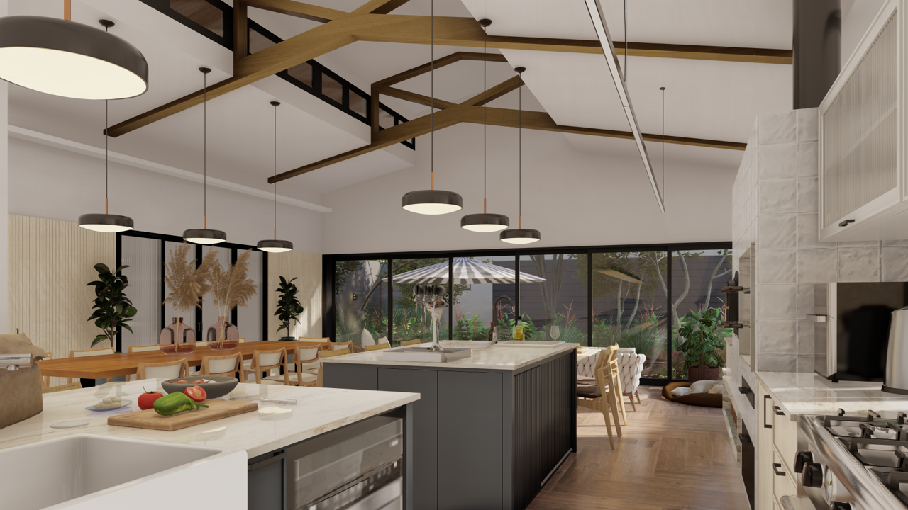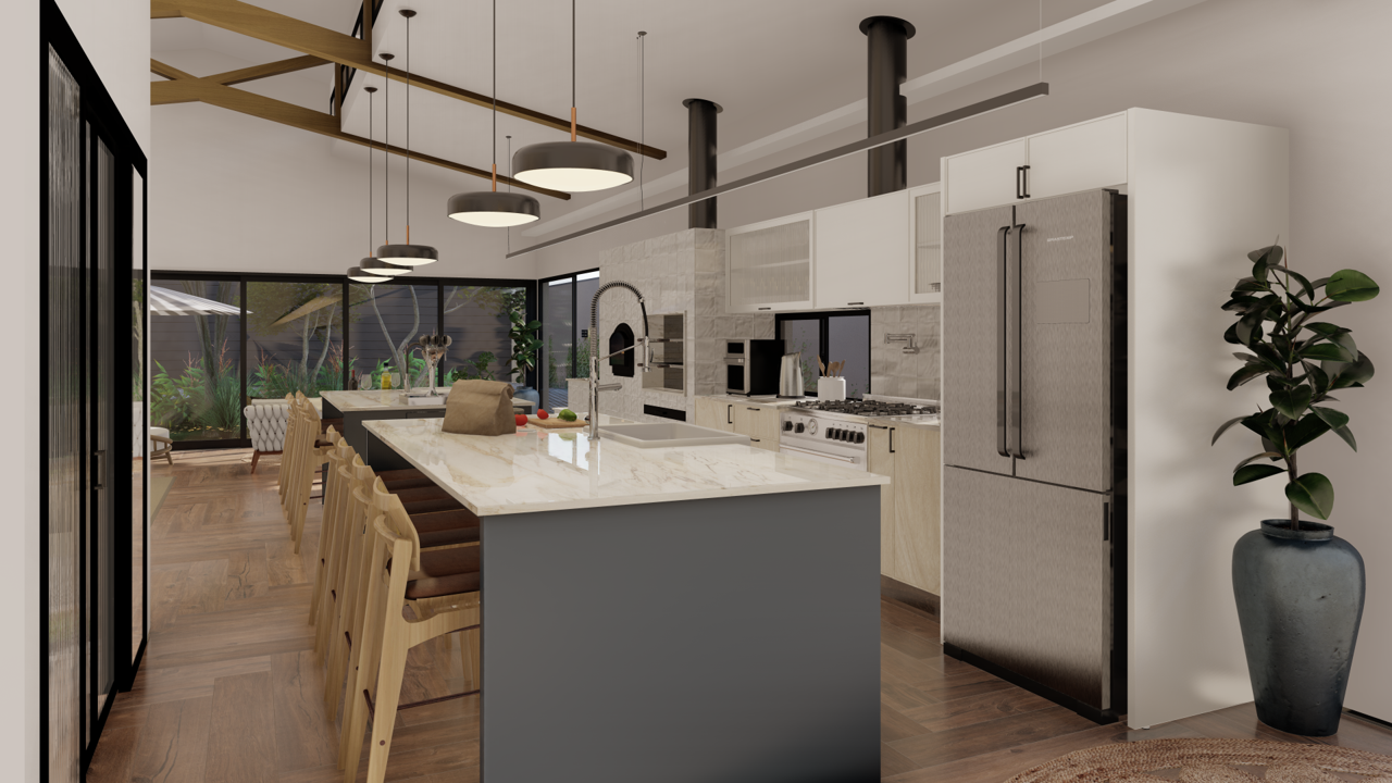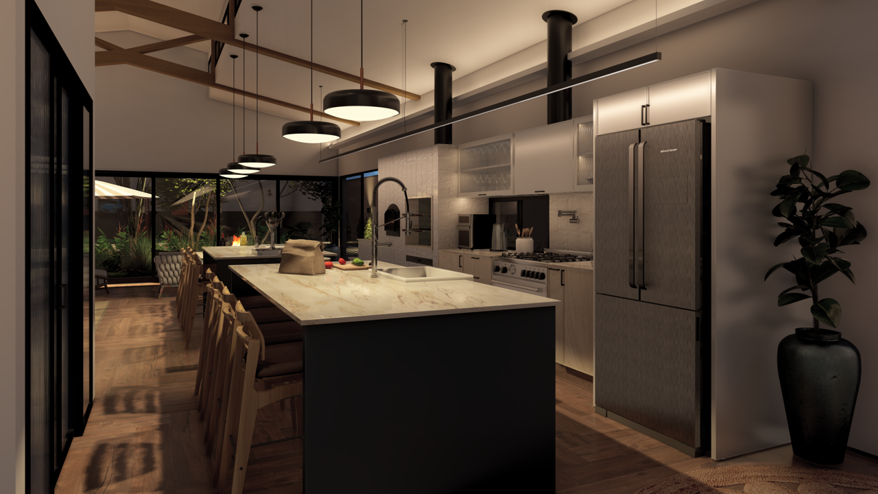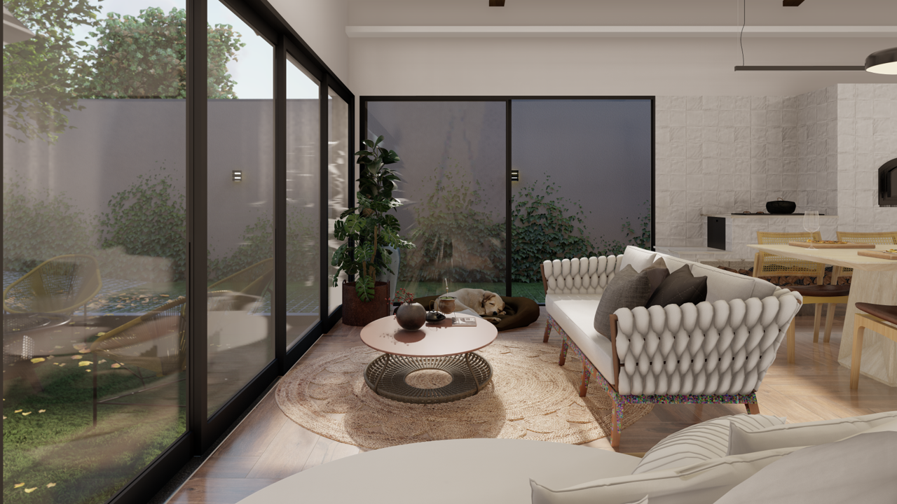 Luz e ventilação natural, enquadramentos de vegetação do quintal, amplitude, integração e conforto, foram objetivos traçados deste projeto. Traduzido em uma casa “celeiro” com a modernidade das cores, tecnologia dos materiais e autenticidade no design dos revestimentos.