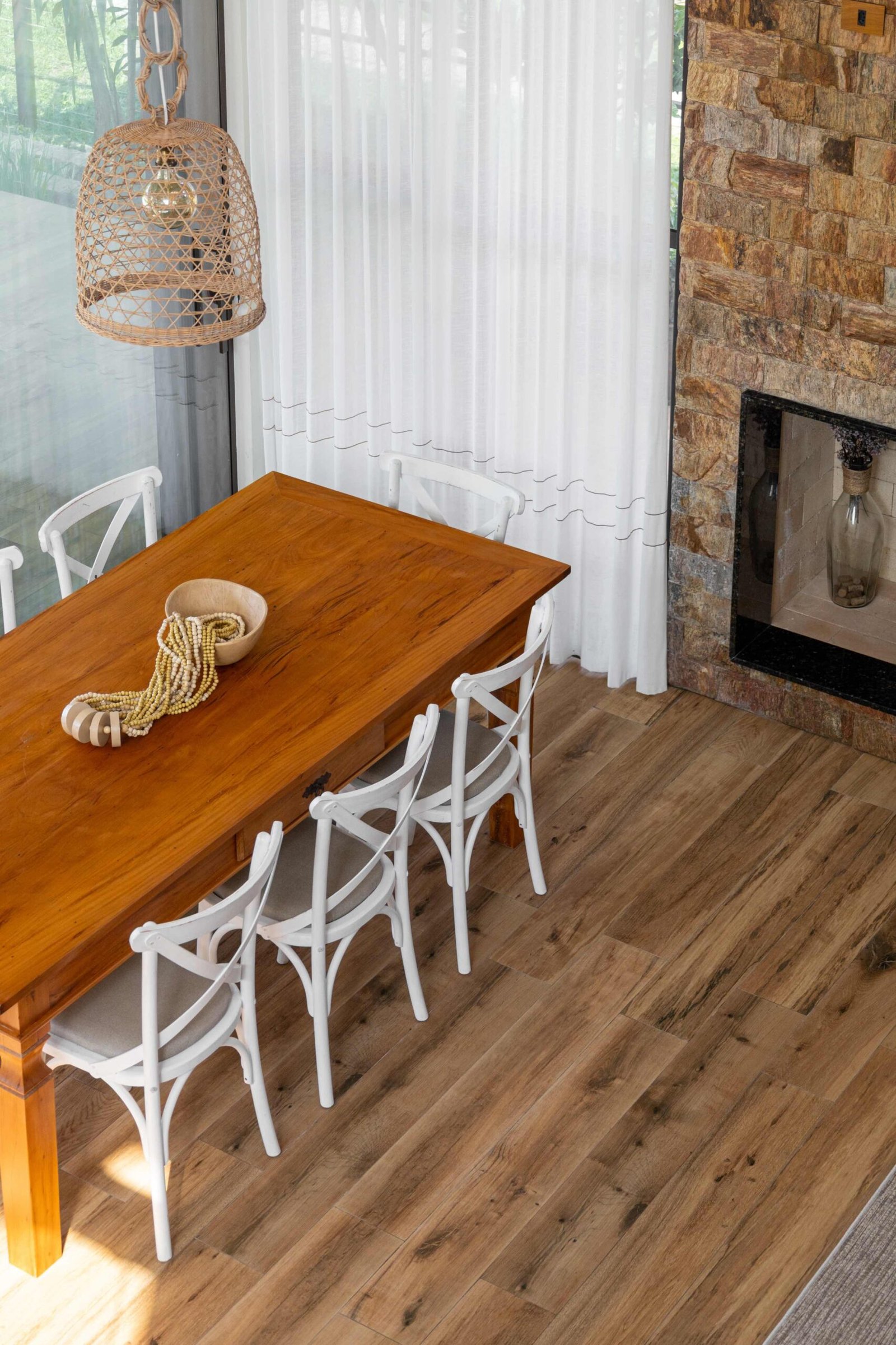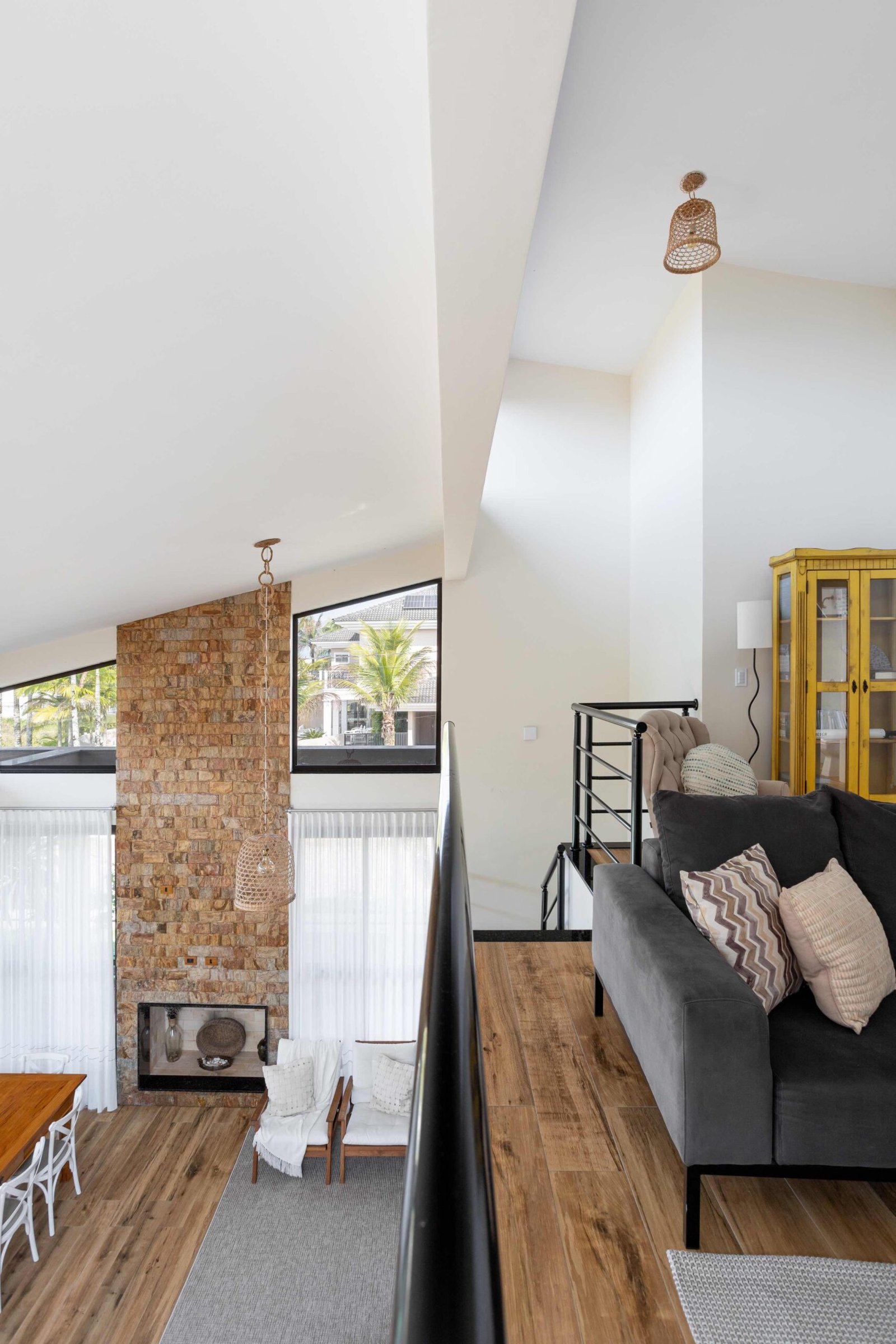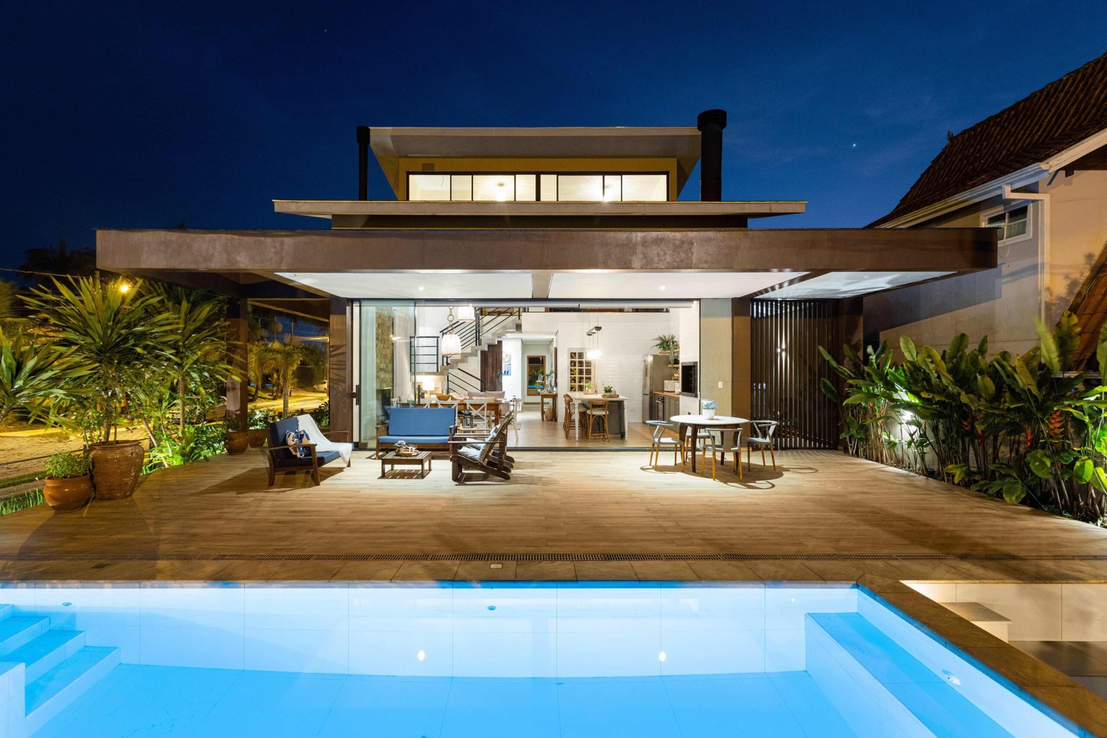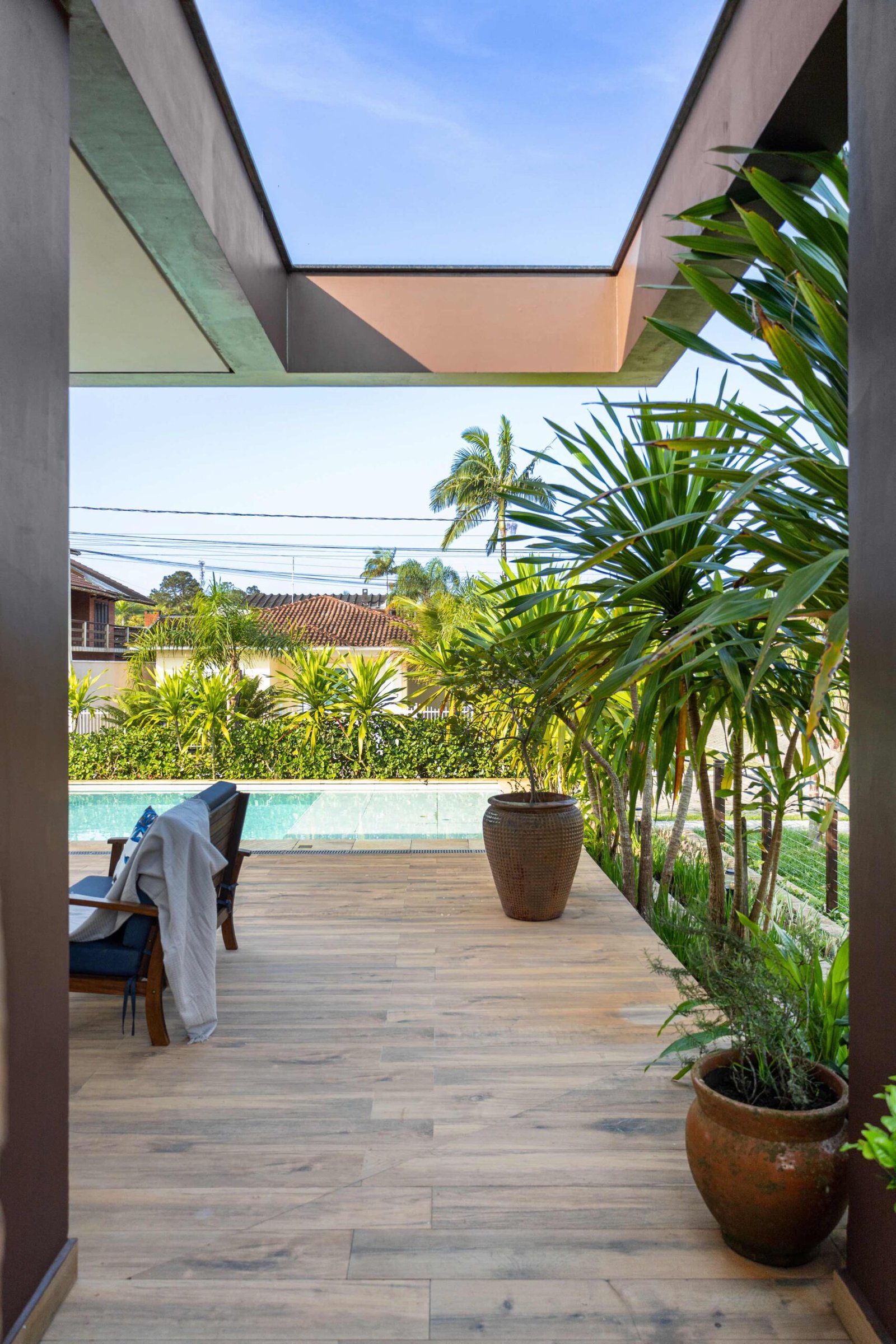 No Litoral do Paraná, projetamos uma casa de praia para um casal e seus três filhos, que desejavam um refúgio para momentos em família nos fins de semana e, no futuro, um lar para a aposentadoria. Com 226m² de área construída em um terreno de 450m², a casa foi pensada para ser fresca e confortável, aproveitando ao máximo as condições naturais do local. Elevada 1 metro do chão para evitar a umidade comum no litoral, a casa ganha privacidade e permite que a piscina, posicionada na esquina, receba a melhor insolação. A ventilação natural é abundante, com o telhado inclinado e o forro que favorecem a circulação de ar, expulsando o calor através da janela superior, criando um efeito chaminé. Com 6 quartos, sendo 2 suítes, a casa integra os ambientes de forma fluida, com grandes portas de vidro que conectam a varanda e o mezanino. O estilo, inspirado nas viagens da família e na Provence, traz elementos de pedra natural e um paisagismo encantador, criando um ambiente acolhedor e sofisticado sem exageros. A cozinha, um dos destaques, reflete a personalidade dos moradores, trazendo um toque marcante à decoração. A casa é, acima de tudo, um lugar para viver intensamente a convivência familiar, em harmonia com a natureza e com o clima local.