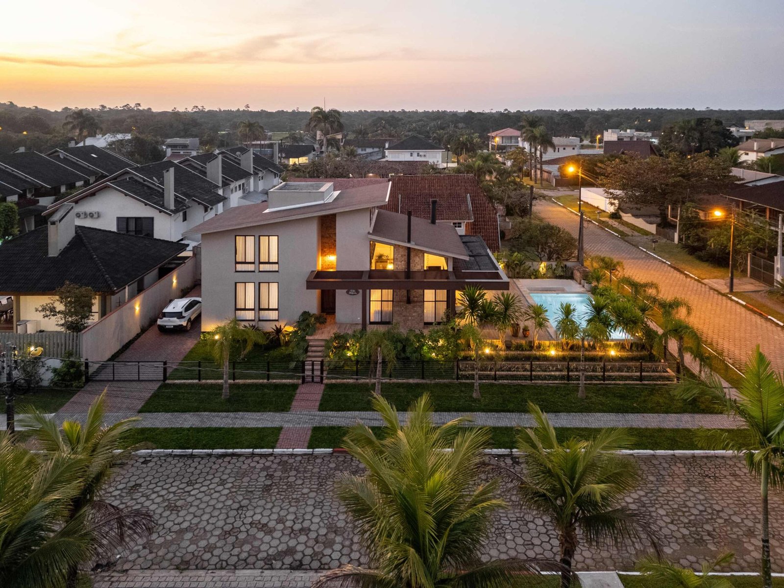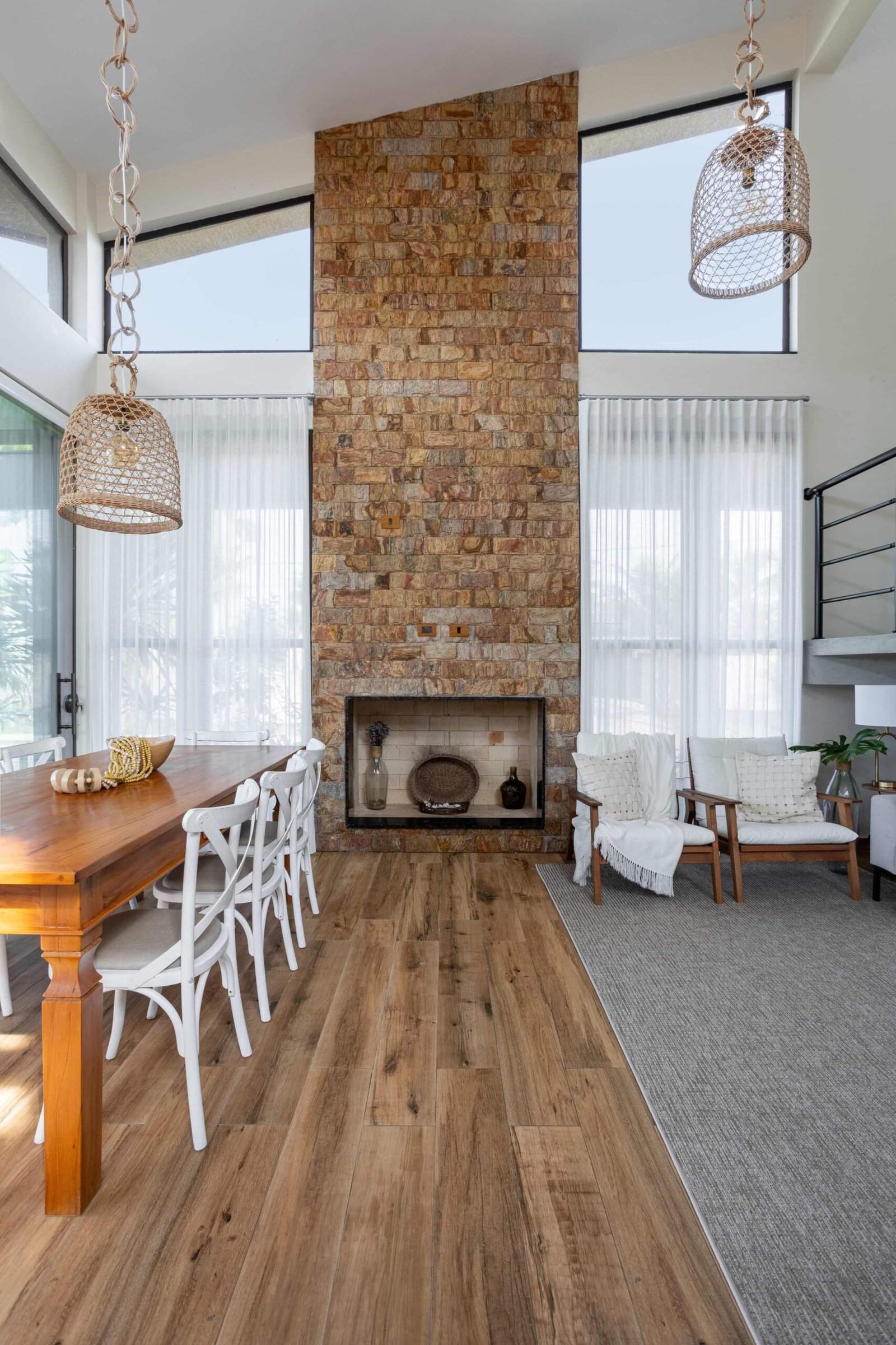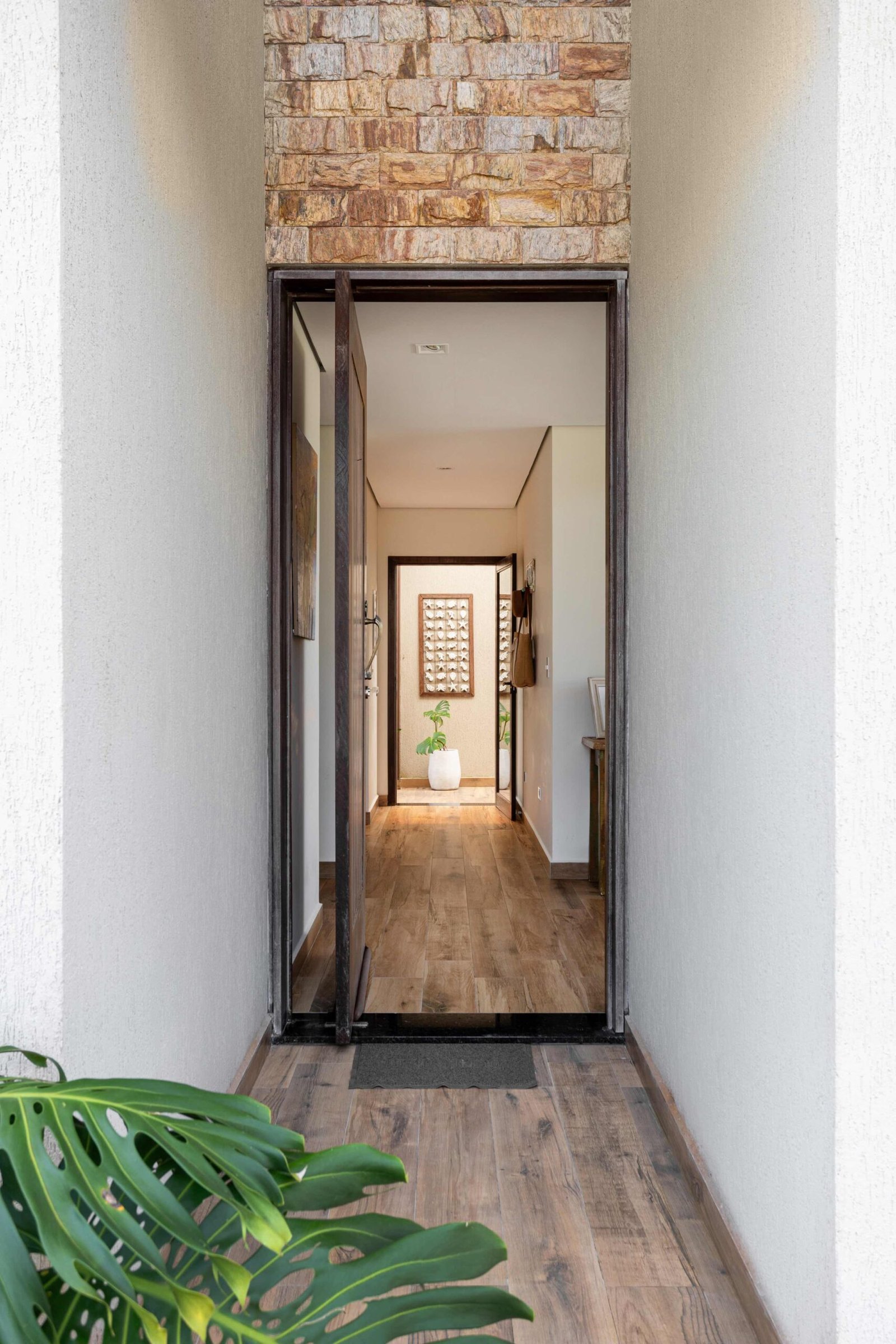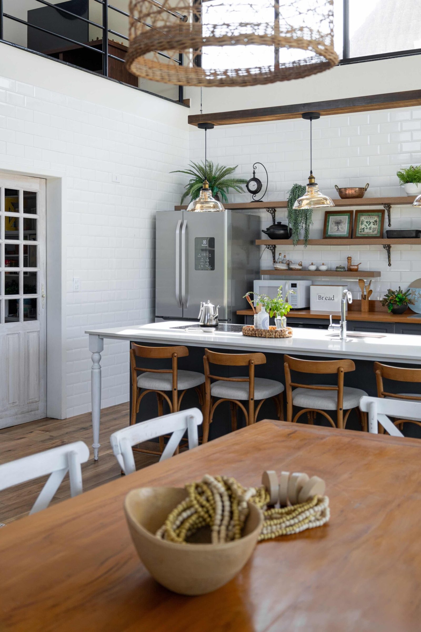 No Litoral do Paraná, projetamos uma casa de praia para um casal e seus três filhos, que desejavam um refúgio para momentos em família nos fins de semana e, no futuro, um lar para a aposentadoria. Com 226m² de área construída em um terreno de 450m², a casa foi pensada para ser fresca e confortável, aproveitando ao máximo as condições naturais do local. Elevada 1 metro do chão para evitar a umidade comum no litoral, a casa ganha privacidade e permite que a piscina, posicionada na esquina, receba a melhor insolação. A ventilação natural é abundante, com o telhado inclinado e o forro que favorecem a circulação de ar, expulsando o calor através da janela superior, criando um efeito chaminé. Com 6 quartos, sendo 2 suítes, a casa integra os ambientes de forma fluida, com grandes portas de vidro que conectam a varanda e o mezanino. O estilo, inspirado nas viagens da família e na Provence, traz elementos de pedra natural e um paisagismo encantador, criando um ambiente acolhedor e sofisticado sem exageros. A cozinha, um dos destaques, reflete a personalidade dos moradores, trazendo um toque marcante à decoração. A casa é, acima de tudo, um lugar para viver intensamente a convivência familiar, em harmonia com a natureza e com o clima local.